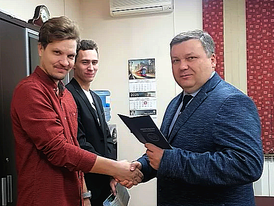 Завершили обучение ещё два водителя троллейбуса. Главный инженер «Горэлектротранса» вручил выпускникам водительские права и свидетельства.