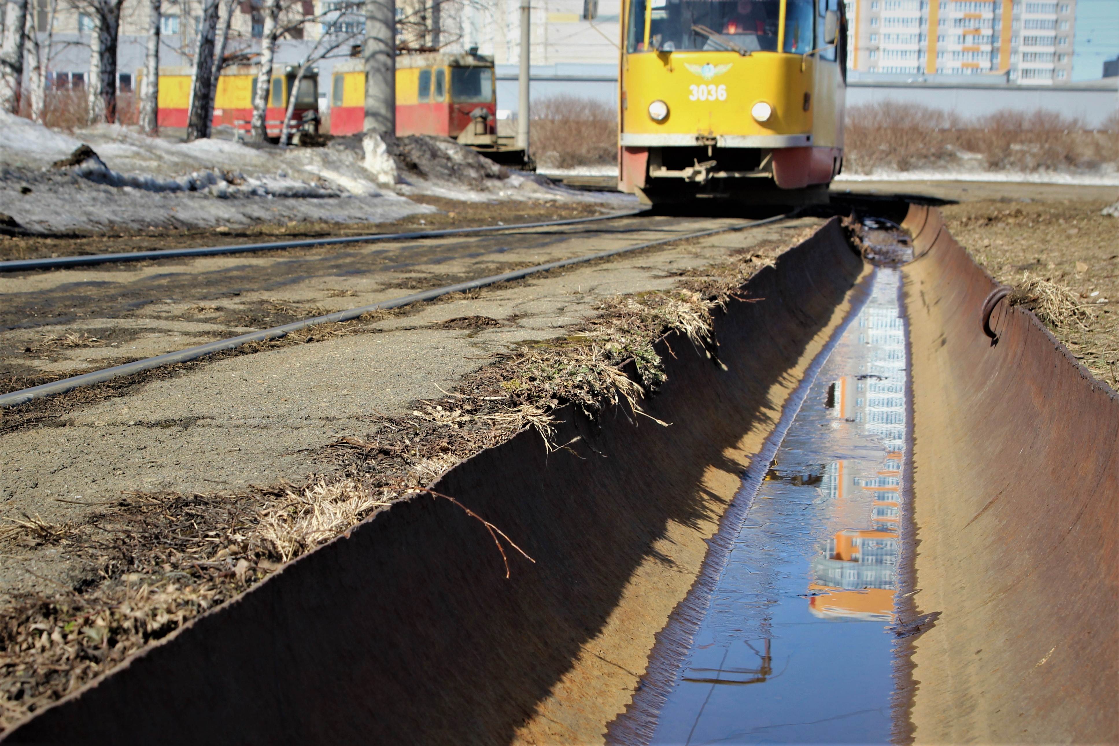 Для предотвращения подтопления трамвайных путей с линии на отвал вывезено более 140 тонн снега, вдоль путей вскрыты водоотводные лотки для беспрепятственного пропуска талых вод.