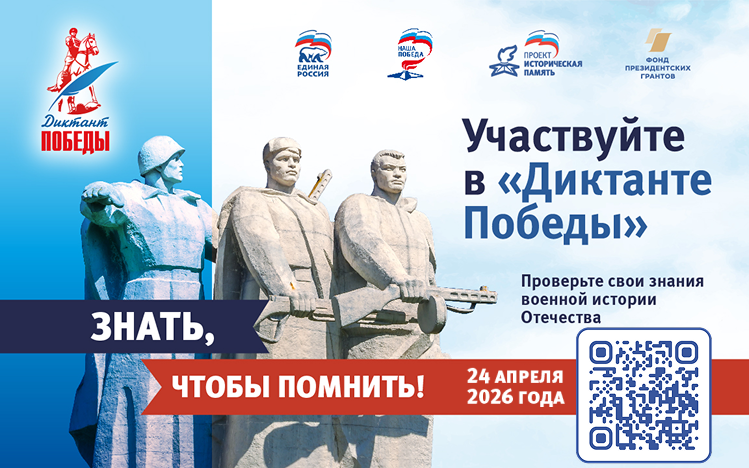 24 апреля «Единая Россия» в восьмой раз проведет международную патриотическую акцию «Диктант Победы». Ее посвятят Маршалу Советского Союза Георгию Константиновичу Жукову и другим советским военачальникам, а также событиям Великой Отечественной войны, юбилейные даты которых приходятся на 2026 год.