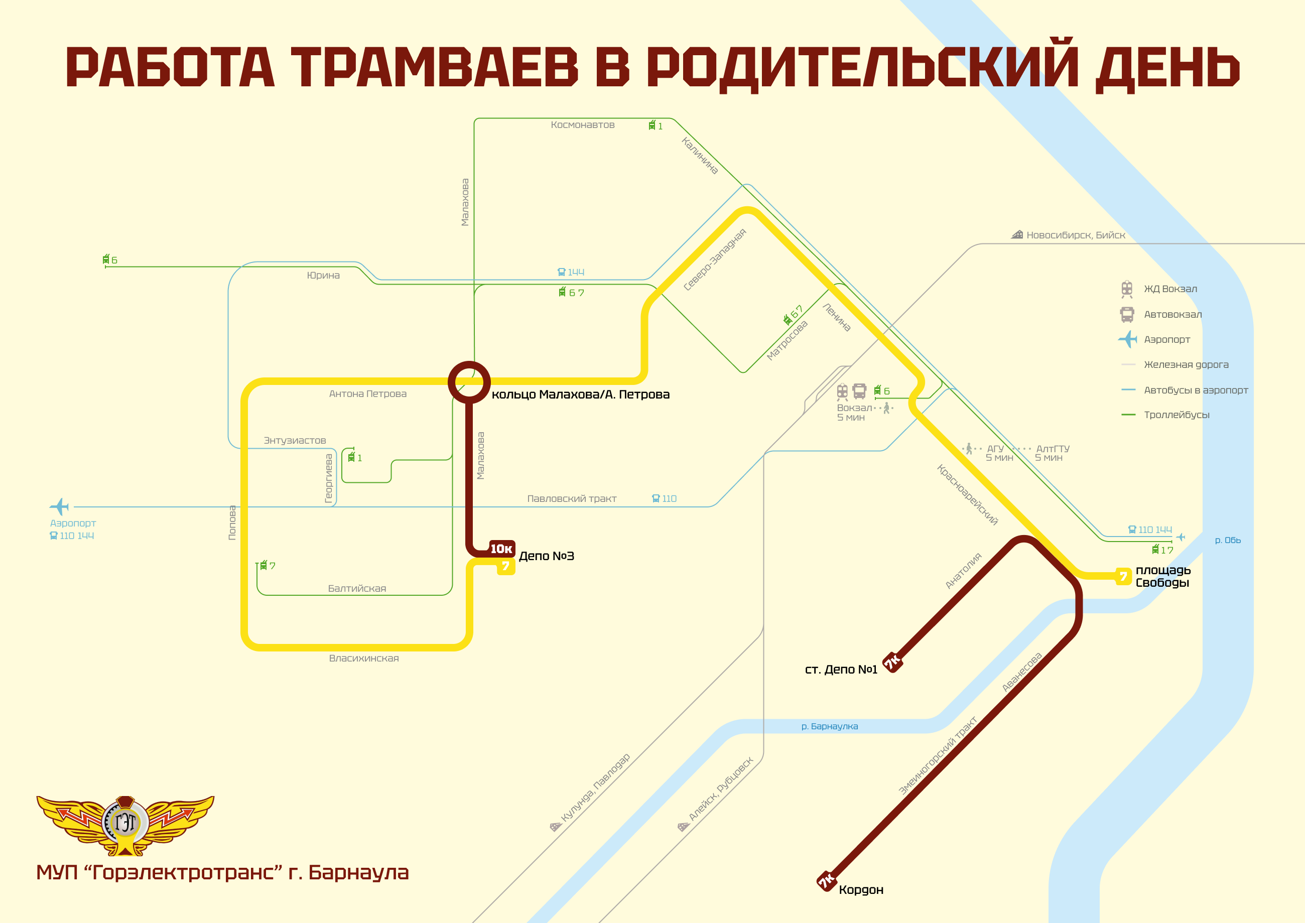 ст. «Депо №1» – Анатолия – Красноармейский – Аванесова – Змеиногорский – Кордон.